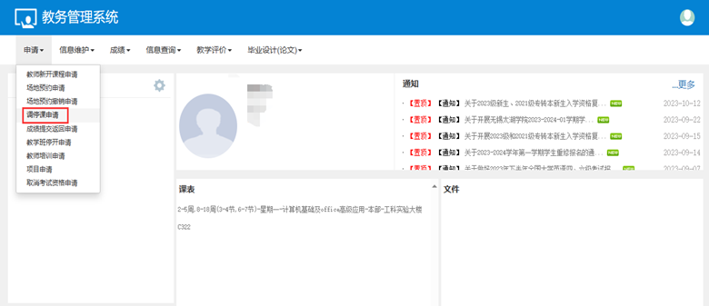(一)登录教务管理系统成功后,选择申请-调停课申请