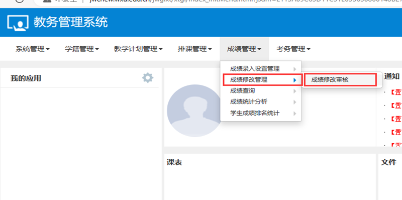 (2)选择成绩管理-成绩修改管理-成绩修改审核,如下图所示。