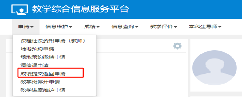 (1)登录教务管理系统成功后,点击“申请”—“成绩提交返回申请”。