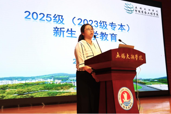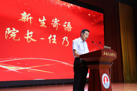 任乃飞院长寄语"智能装备人"勇担使命。他代表学院热烈欢迎新生,介绍学院5个特色专业——机械工程(国家一流、省产教融合品牌专业)、自动化与机械电子工程(省一流、无锡产教融合示范专业)、机器人工程与智能制造工程(前沿新工科专业),强调专业集群紧密对接 “中国制造” 向 “中国智造” 升级需求。他寄语新生:践行“自强不息,经世致用” 校训,希望大家直面工科挑战;拥抱智能时代,锻造核心竞争力;厚植家国情怀,助力制造强国建设。